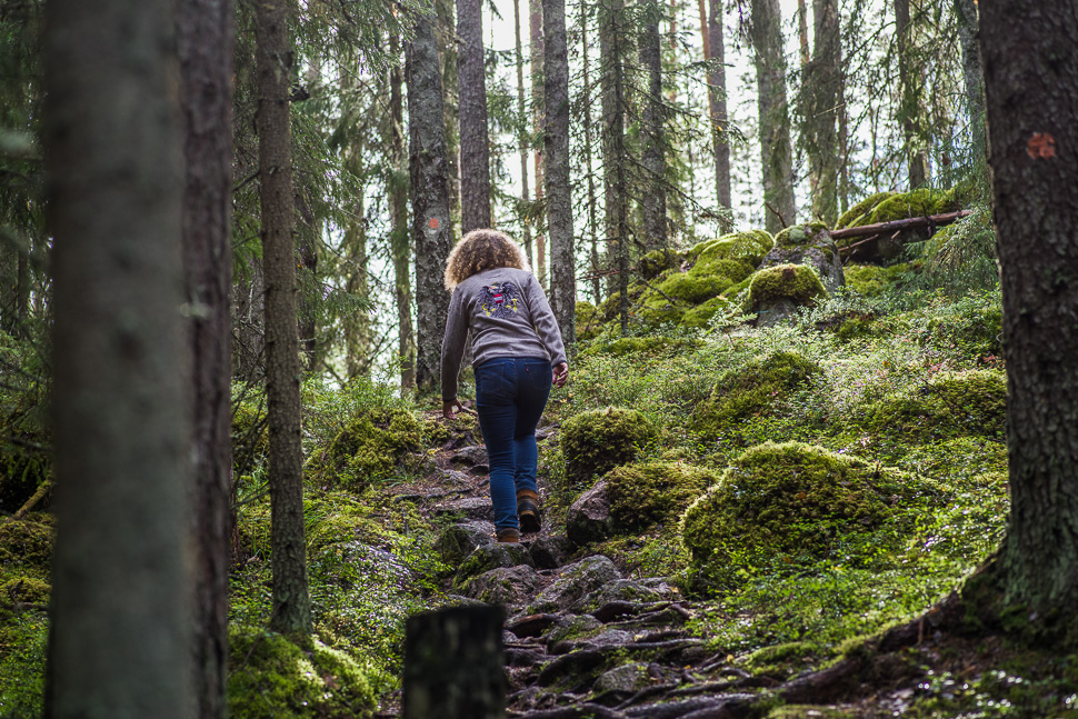 We saw the signs for the Kolovesi National Park (Koloveden Kansallispuisto in Finish) and left the main road to reach a parking from where we took a hike.