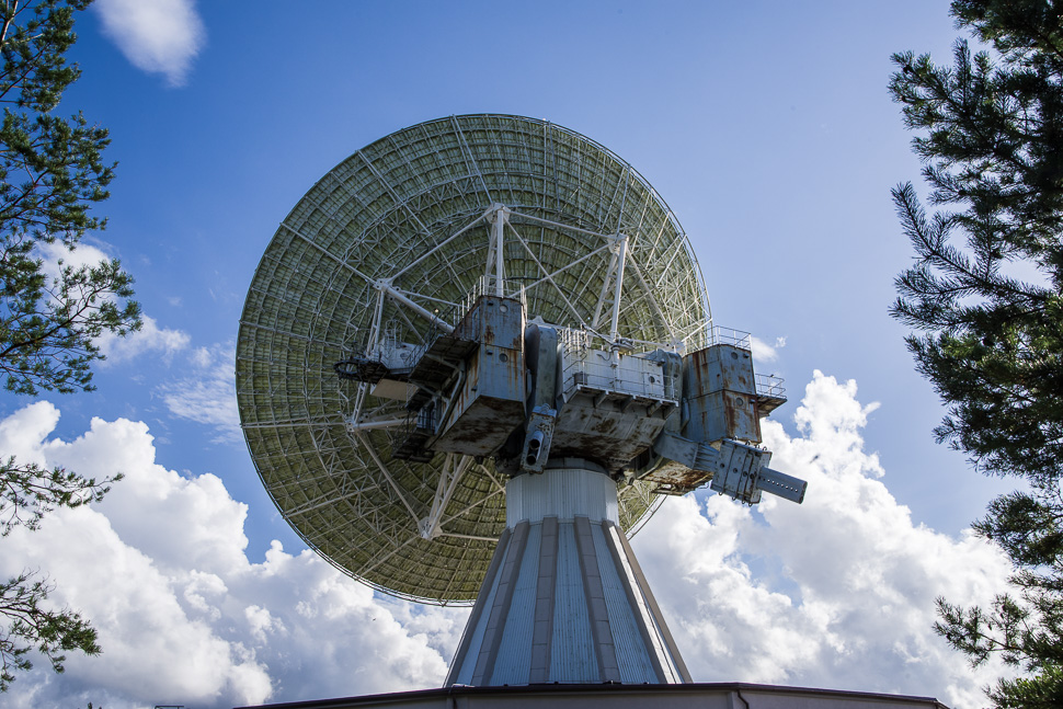 The telescopes were built by the Russian Navy in late 1960. In 1994, when the Russian army pulled out of Latvia, the withdrawing troops took most of the equipment with them, including the smaller antennas. They also poured acid on the telescope’s motors, cut all the cables, took away all the documentation and destroyed much of the surrounding infrastructure. But they couldn’t take the big telescopes with them. It was a lot of work to repair everything with no manuals and all the wiring destroyed, but they succeeded. The big 32m dish which weighs 60 tons was taken down and completely renovated so that it works now very accurately.